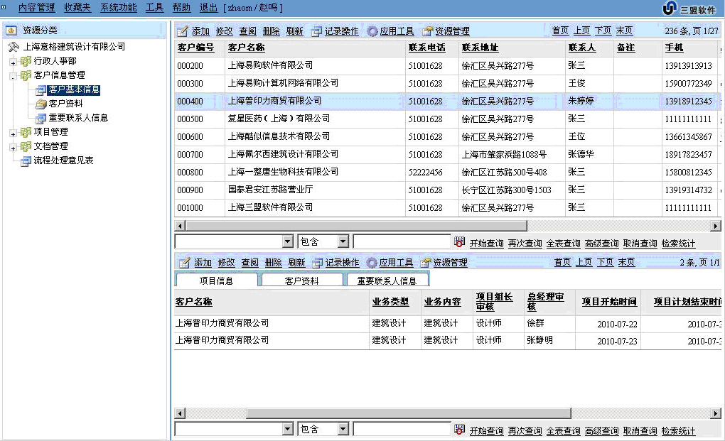 业务伙伴管理:帮助您维护客户的基础数据,提供了与客户信息相关联的项目信息、项目合约书、项目合同等建筑设计行业客户需要的管理功能。